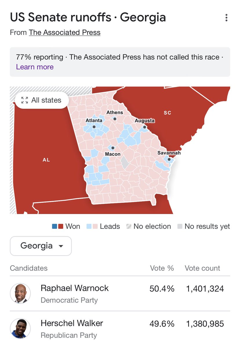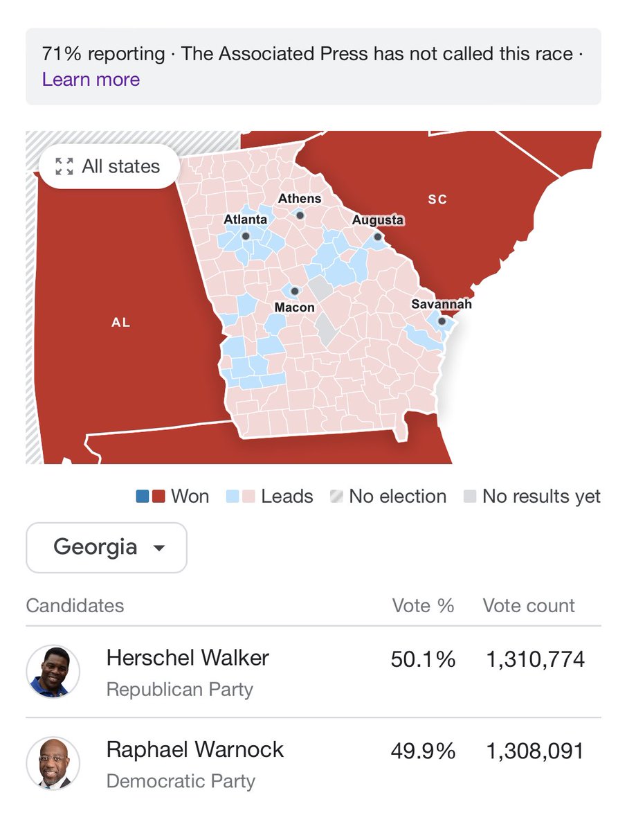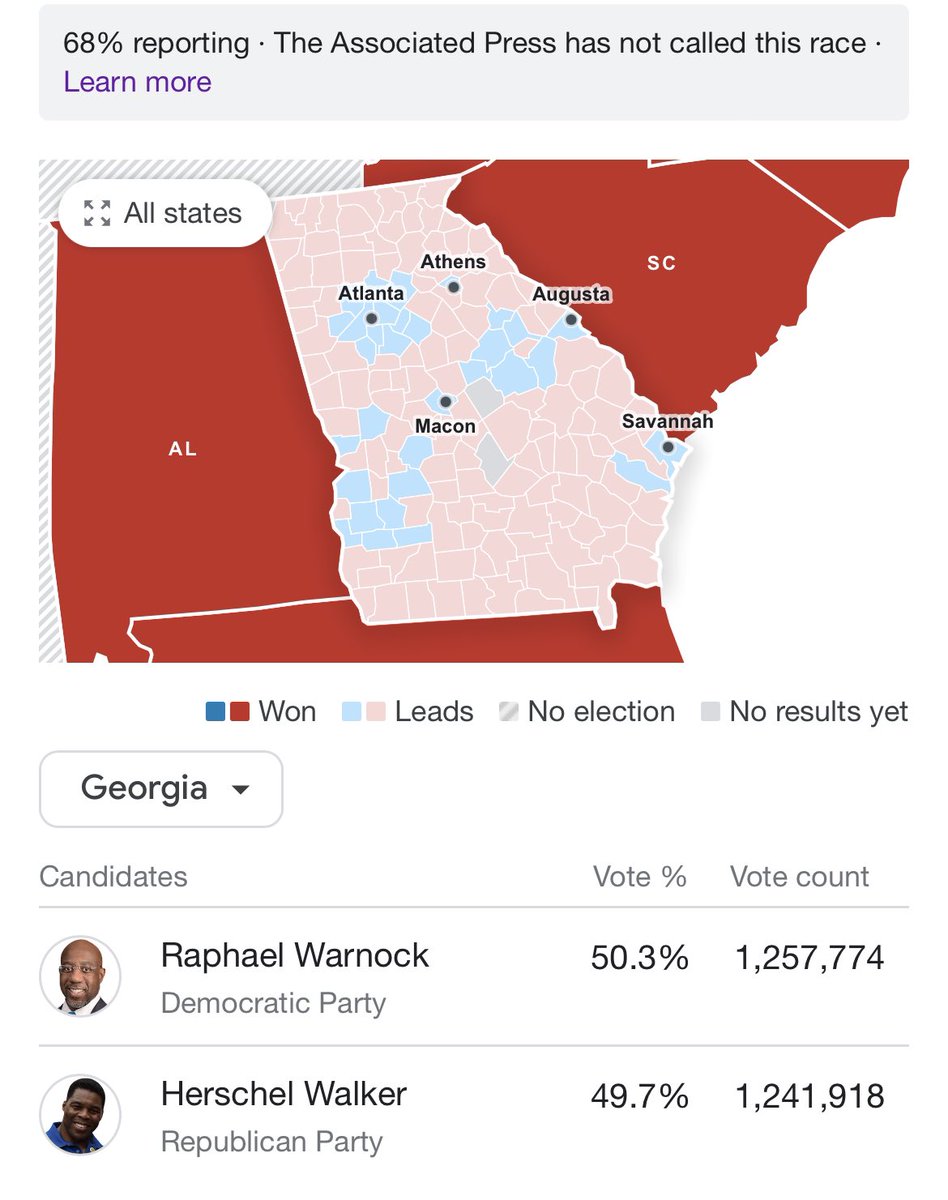 Guys this is Georgia. It was always going to be close. No one predicted a blowout. Yes their candidate is a disgrace and ours is phenomenal. But the numbers now are much closer to what I was expecting to see from the beginning. Warnock can (and I believe will) still win.