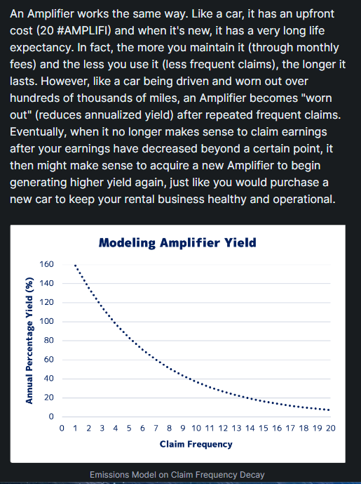 1. #AMPLIFI emissions are produced infinitely, but remember we burnt 20 #AMPLIFI to start producing that yield in the first place.
