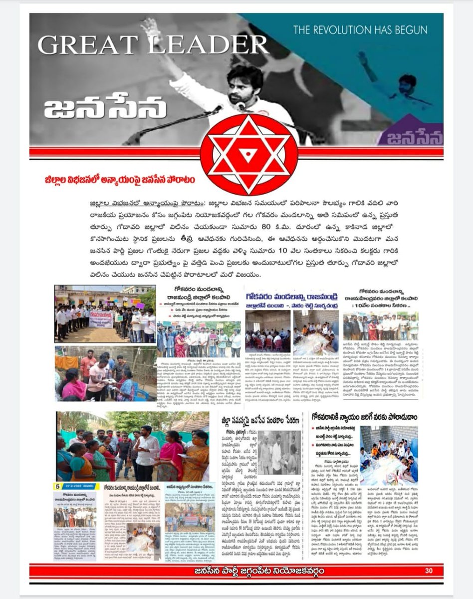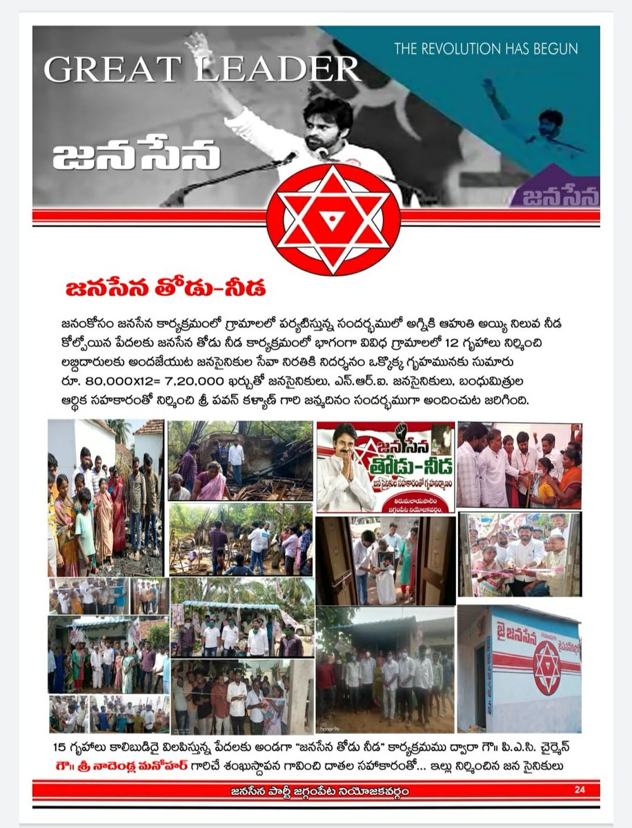 29. జనసేన సేవా కార్యక్రమాలు - 2 30. జనసేన పోరాటం - జిల్లా విభజనలో అన్యాయం 31. చారెడు నేల - బతుకు బాట 32. NRI జనసైనికుల ఆర్థిక సహాయంతో బ్రిడ్జి నిర్మాణం మరియు భవనం నిర్మాణం #APNeedsPawanKalyan