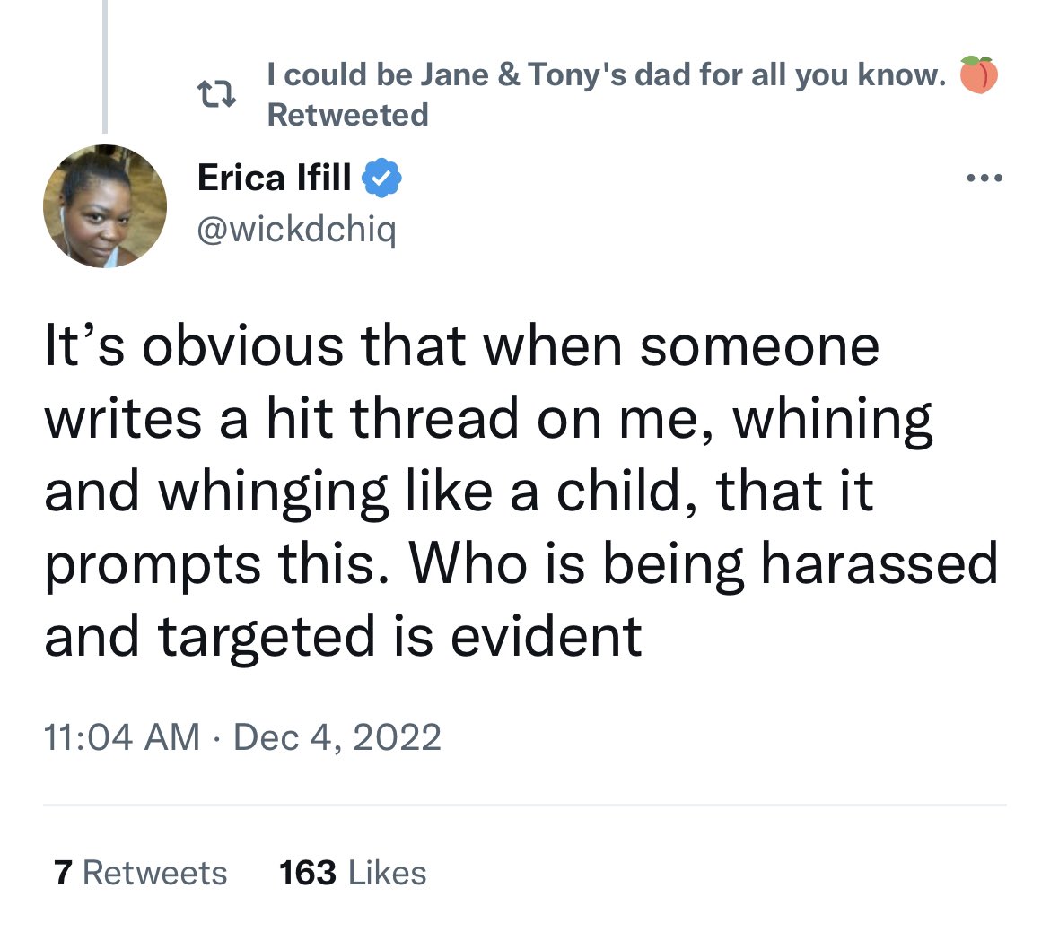 Here is @TheHillTimes columnist Erica Ifill retweeting an anonymous account that was created last month, the majority of whose ~200 tweets are about me or @ItsDeanBlundell.