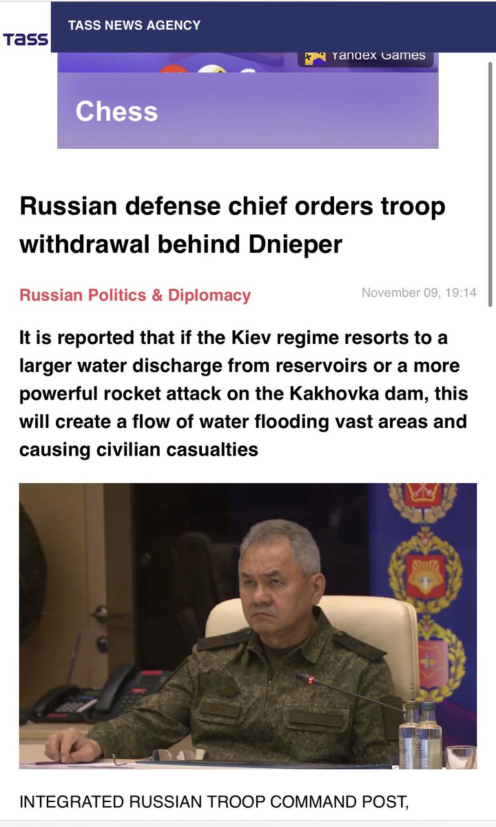 The public taping aspect is interesting. Surovikin is the operational commander and has controlled this area since the start of the war, so withdrawal was most likely his idea—and really the only viable choice for months. But Shoygu also likes status and attention 👇 (/3)