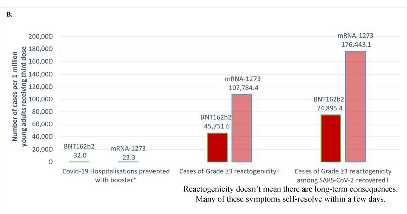 Figure 1b is more egregious. They plotted the same hospitalization prevention number against grade≥3 Reactogenicity. "Reactogenicity refers to a subset of reactions that occur soon after vaccination, and are a physical manifestation of the inflammatory response to vaccination."