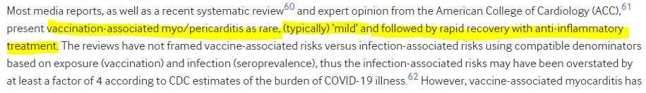 Every reference cited, and clinicians have corroborated, stated clearly that vaccination-caused myocarditis is generally mild & self-resolved, while SARSCoV2-caused ones are severe with comorbidities with other pathologies. They admitted to it themselves, and they still used it.