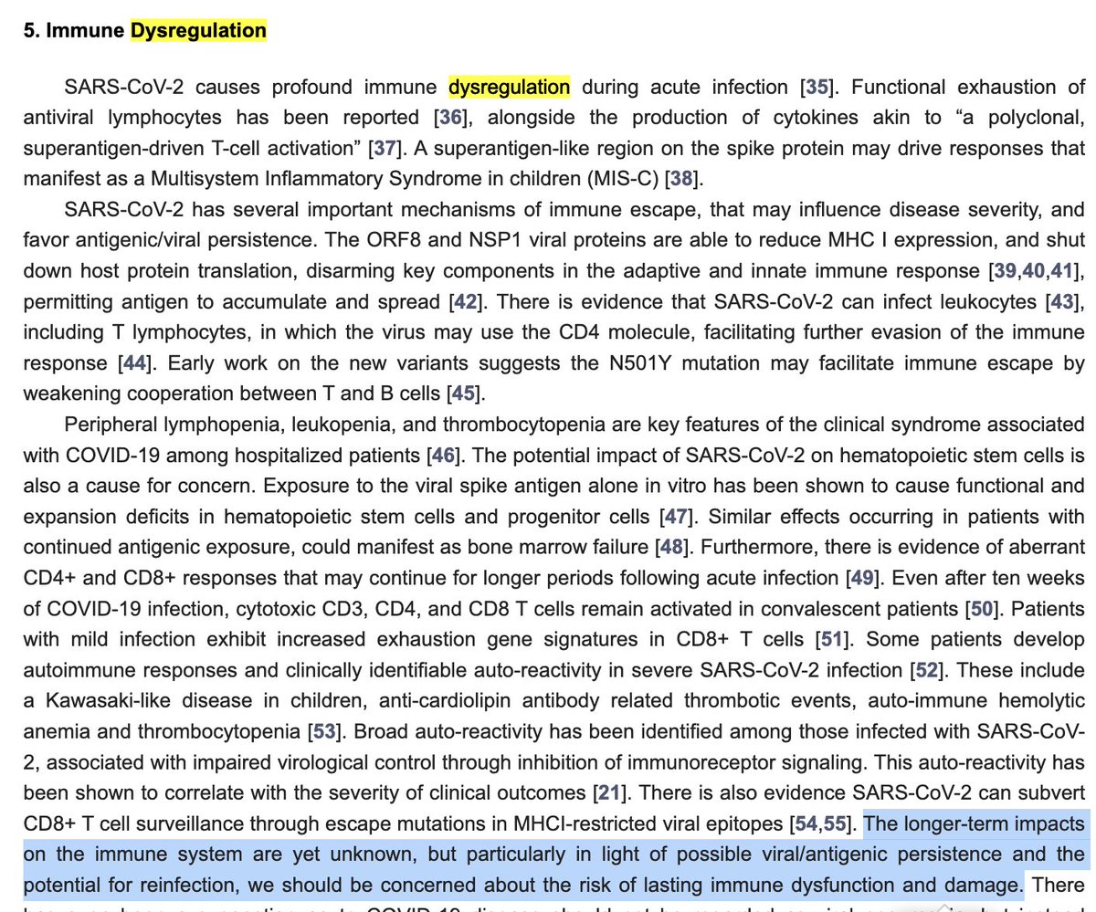 This paper we wrote in 11/2020 and published in 2021, set out some of the long-term risks of mass infection strategies. Key to the harms anticipated was immune dysfunction