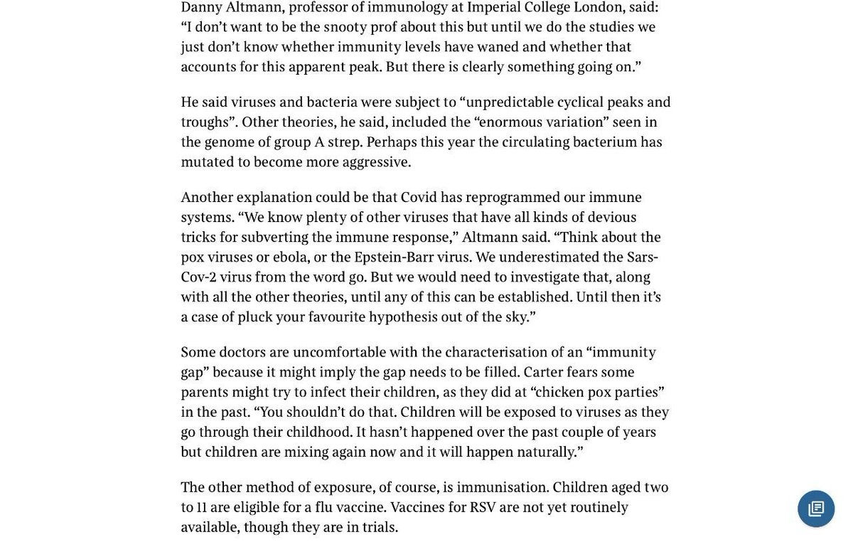 We have seen strange manifestations of RSV, monkeypox, polio, and now strep A, and people are beginning to think along the same lines as me, wondering whether SARS-CoV-2 has changed our immune systems. @Daltmann10 spoke about it in today's Sunday Times.