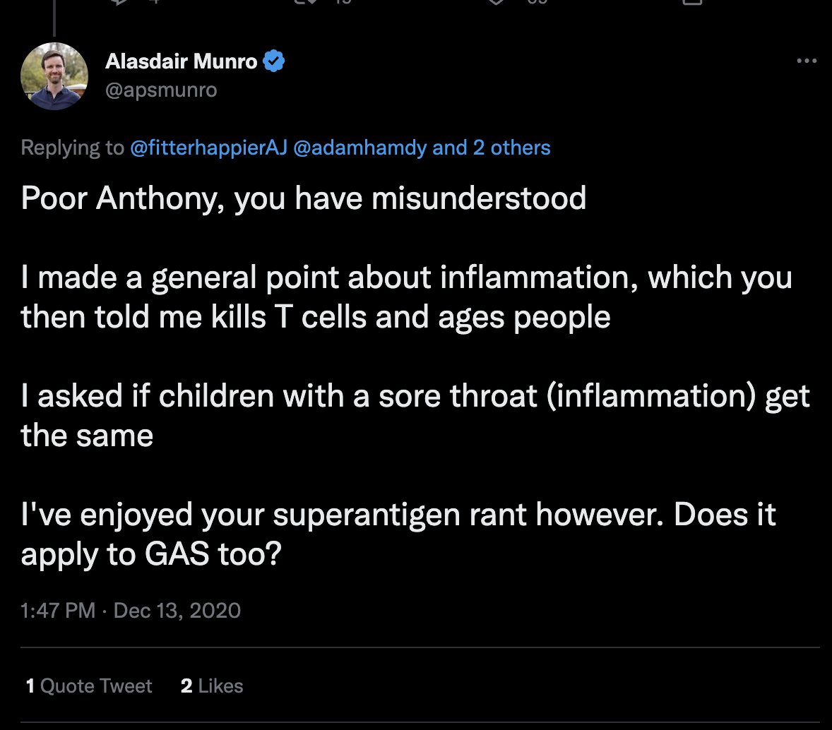 One of my greatest criticisms has been that I have conflated the T cell results in what happens in a small percentage of people in severe acute Covid with the broader experience of mild and moderate Covid