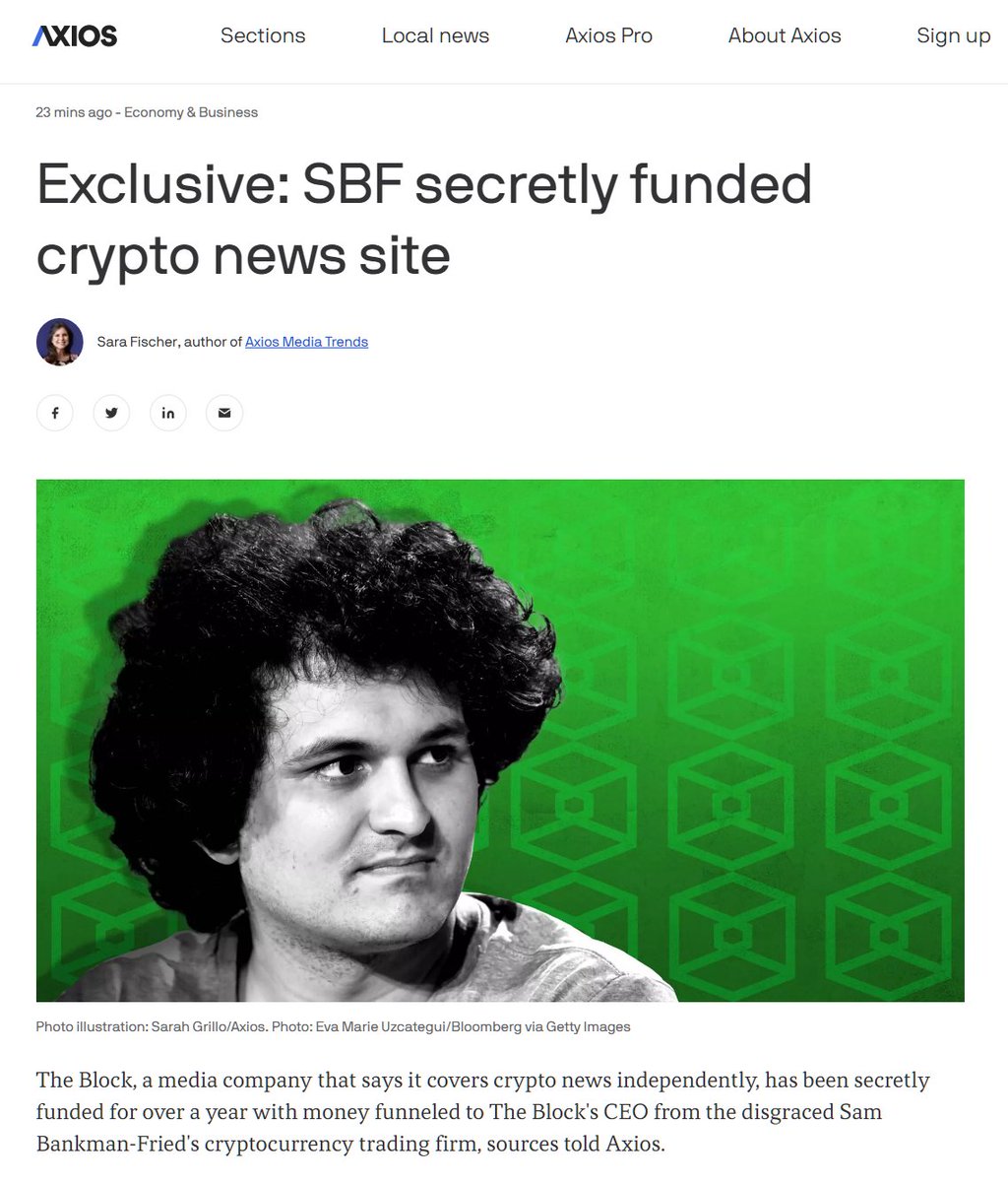 Tethers largest customer, Sam Bankman-Fried, paid off The Block. All Tether criticism from The Block stops and they get access to the Tether fraudsters and Sam Bankman-Fried.