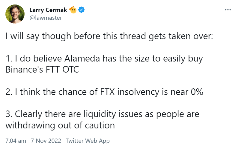 Larry lied. He was paid off after all. Look how good his nuanced information was on FTX. Absolute dog shit.