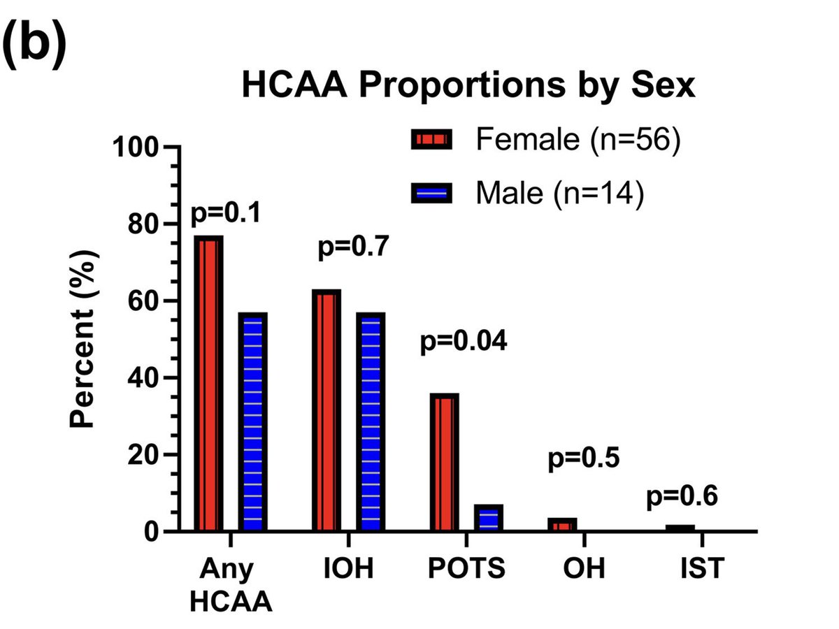 Anomalien (CAA) zu bestimmen, geschlechtsspezifische Unterschiede zu untersuchen und die Prävalenz von CAA bei hospitalisierten und nicht hospitalisierten PASC-Patienten zu bewerten. In der untersuchten Kohorte war die initialen orthostatischen Hypotonie IOH die häufigste
