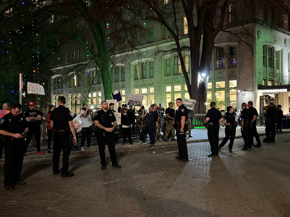 SAPD have lined themselves in front of both opposing sides. Seems like they’re trying to keep people from either side from crossing over.