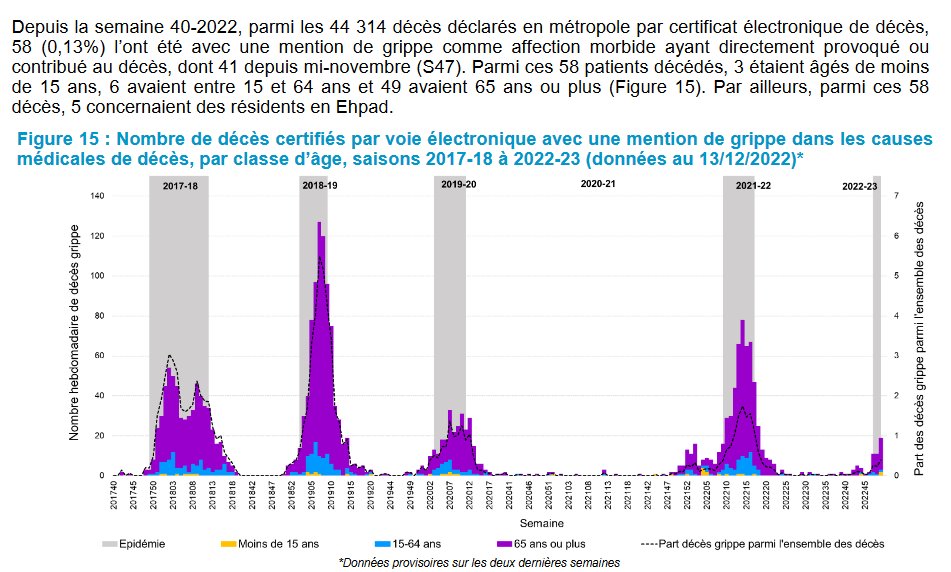 41 décès "avec une mention de grippe comme affection morbide ayant directement provoqué ou contribué au décès" ont été rapportés depuis la mi-novembre.