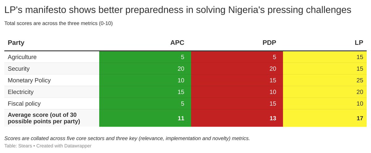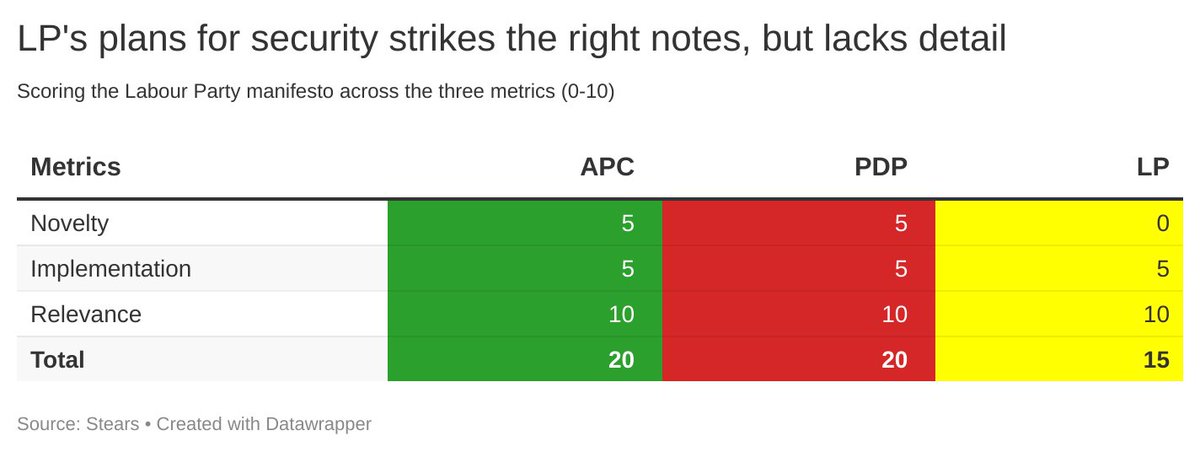 In terms of security, the Labour Party appreciates the steps needed to arrest the insecurity in the country, but additional detail in terms of cost and timelines are necessary to drive success. The APC and PDP took the lead here.