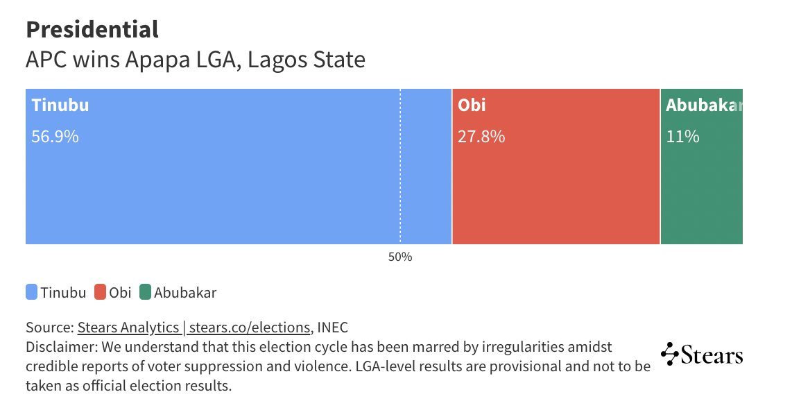 Amuwo-Odofin is also the only LGA that Labour Party won in the gubernatorial and presidential elections, indicating that it is an LP stronghold.