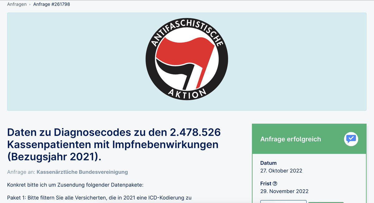 4️⃣Das Portal @fragdenstaat, bisher als seriöse und neutrale Instanz für Informationsfreiheit in Erscheinung getreten, entlarvt sich mit linksradikaler Symbolik als aktivistischer Account, der die Gelegenheit nutzt, „Querdenker“ für das Datenchaos der KBV zu verhöhnen.