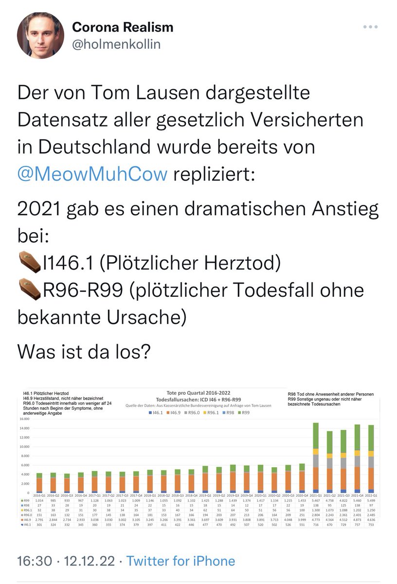 ➡️dass es die Masse an plötzlich verstorbenen Impftoten nicht gibt ist wahr, allerdings ist es hanebüchen, dazu das obige, später widersprochene Statement der KBV oder den Dilettanten Schneider und seine Argumentation hierfür heranzuziehen.