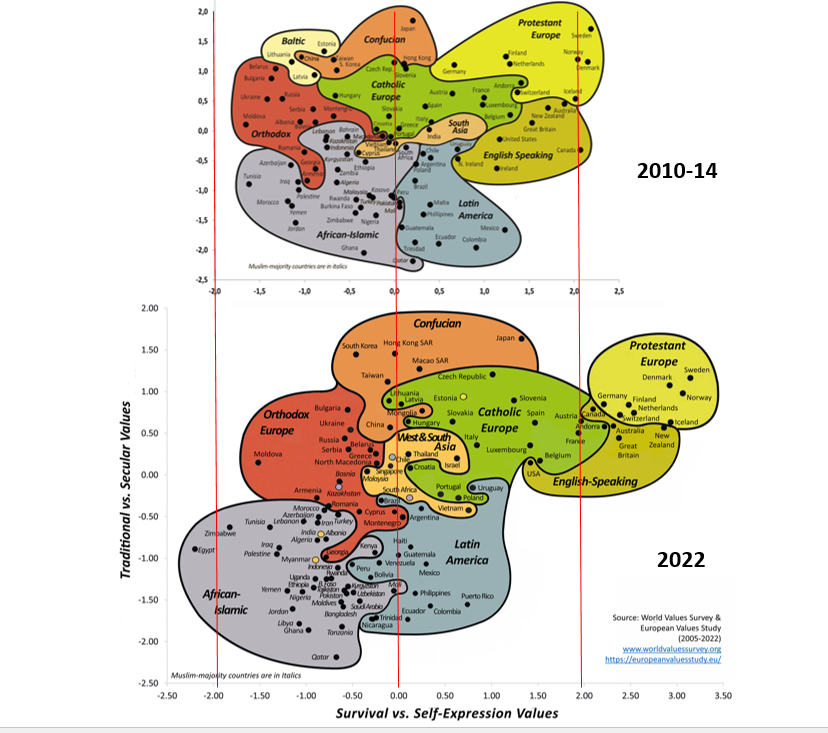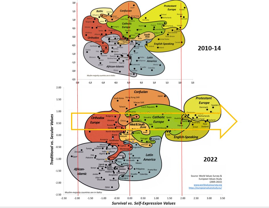 The World Values Survey to my mind shows that (a) the WEIRD are getting way more WEIRD, (b) some of the rest are modernizing, and (c) some are staying put.