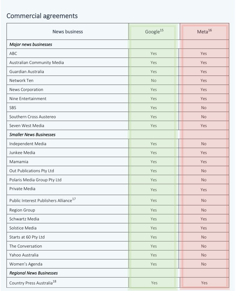 Of course, you may have also heard same company that caused chaos to try to stop it was also not playing ball fully. Red/green are my highlights but Google has been much more supportive of journalism, one company here doesn’t have a deal with Google, 11 “No”’s for Facebook. /3
