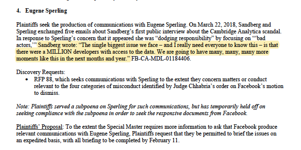 whoa. Twitter+SBF make it a good time for Facebook to have 8,000+ pages of internal emails, docs, audits unsealed... this is NdCal privacy suit that was finally starting discovery on Sandberg and Zuckerberg amid sanctions.