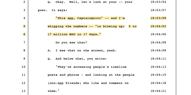 with these unsealed docs, you also get to see into just how powerful the platform could be, here is an app reportedly hitting 17 million users accessing timelines and photos across people who weren't even using the app due to the friends' data "growth hack." /3