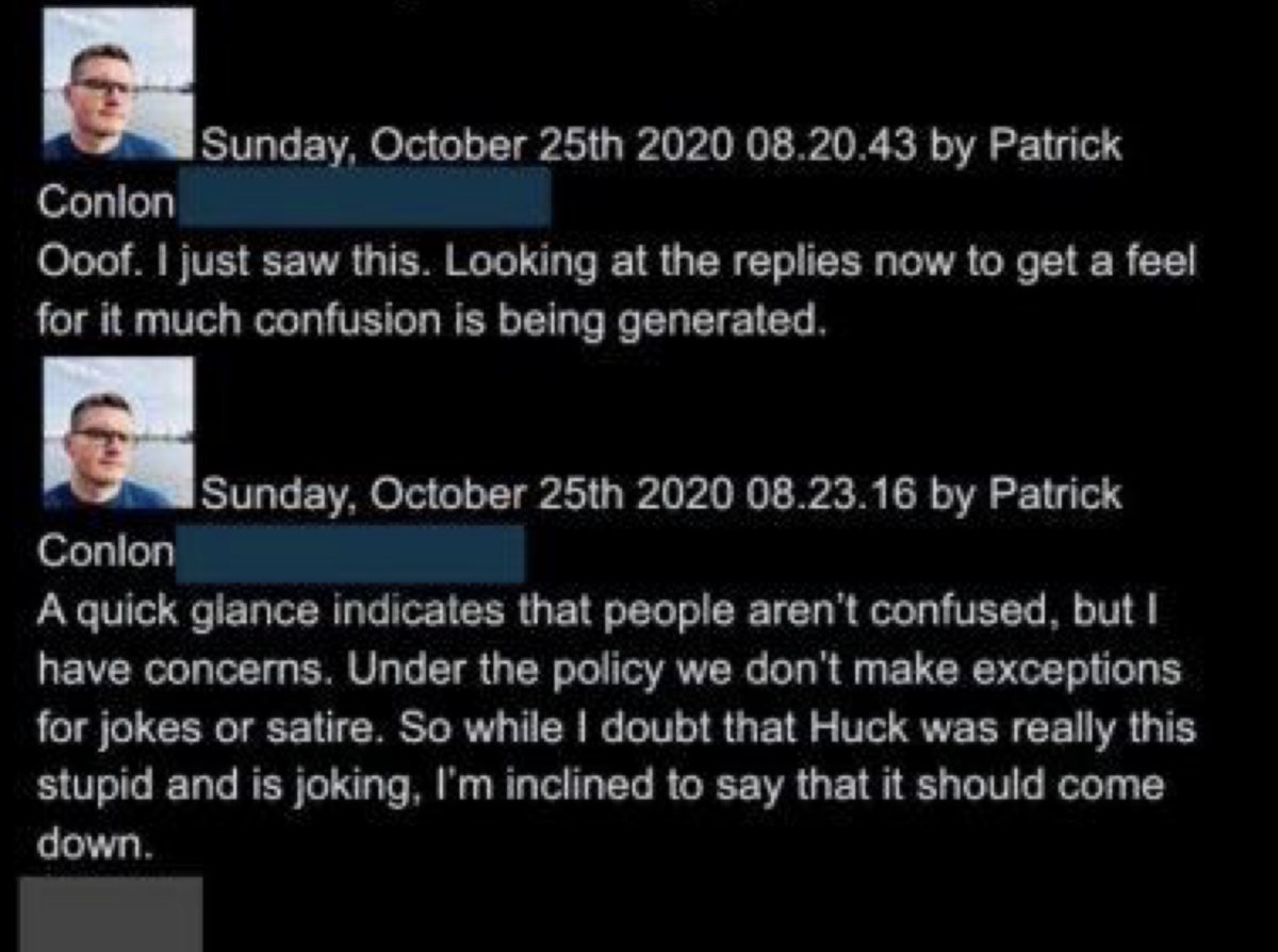 In the latest #TwitterFiles, it is revealed that Twitter Elections & Crisis Response Lead, Patrick Conlon, was one of several decision-makers who pushed for jokes by conservatives to be a basis for TOS strikes. Conlon worked intelligence for years at the US Department of Defense.