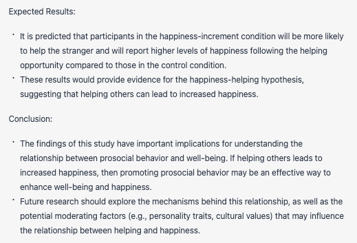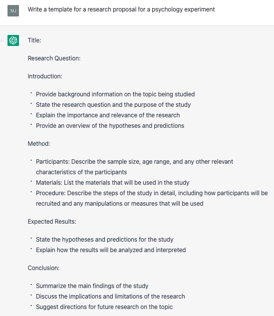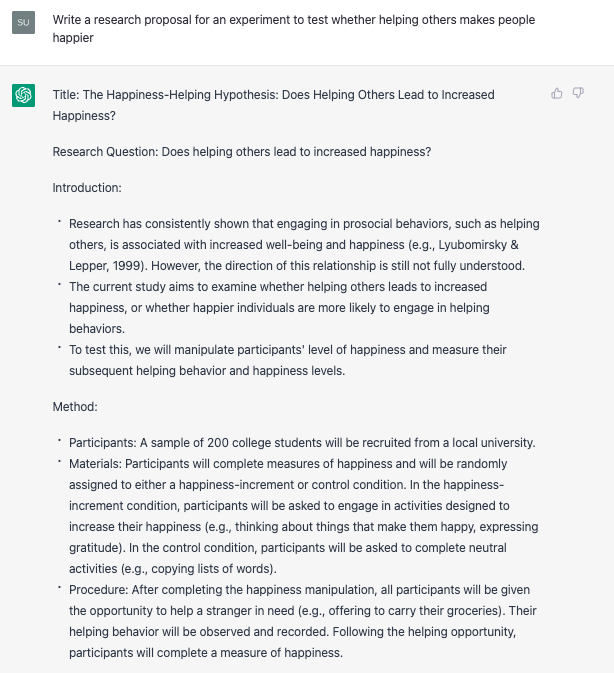 (Of course, ChatGPT can also write the entire research proposal...but 🤫) In this case, interestingly, it got the IV and DV mixed up. Could still be a useful teaching tool to help students learn the research proposal format, instead of working from a blank page.