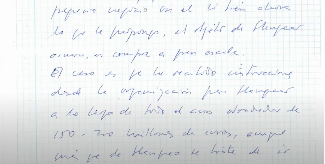 El caso es que he recibido instrucciones desde la organización para blanquear a lo largo de todo el año alrededor de 150-200 millones de euros, aunque más que de blanqueo se trata de ir eliminando las grandes cantidades en efectivo que se van acumulando."