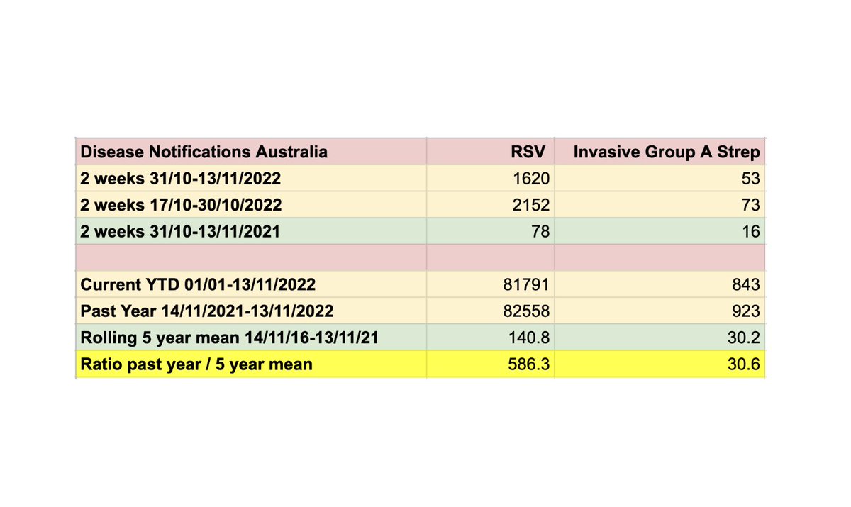 1/ According to data published on the health.gov.au website, notifications for Invasive Group A Strep in Australia are increased by over 30 TIMES in the last year compared to the average of the last 5 years and for RSV by an incredible 586 TIMES