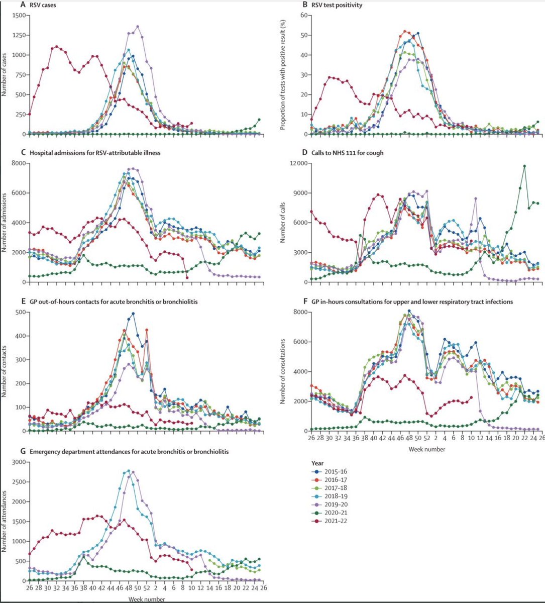 2/ RSV was up dramatically in England in 21-22, as compared to 20-21, so it is simply not correct to say that "over the past two winters there hasn't been much RSV", yet this is supposedly the premise of the argument in favour of "immune debt/gap".