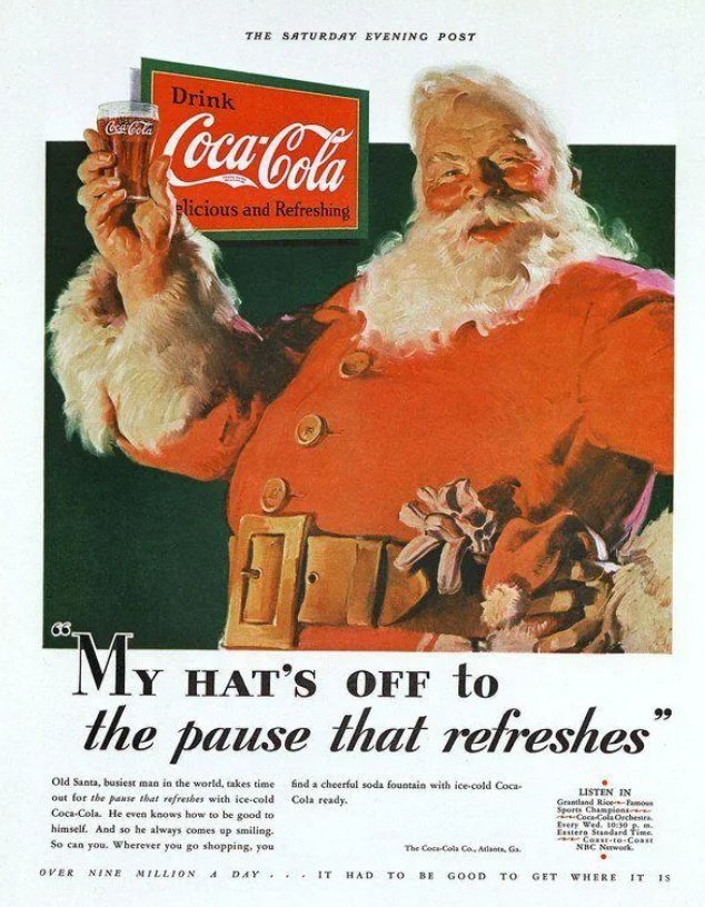 Dock har Coca Cola haft en avgörande betydelse i att befästa hur jultomten ska se ut. Redan på 1920-talet började man att göra annonser inför jul där jultomten förekom. Inför julen 1930 ritade Fred Mizen en jultomte som drack Coca Cola i varuhuset Famous Barr Co. i St. Louis.