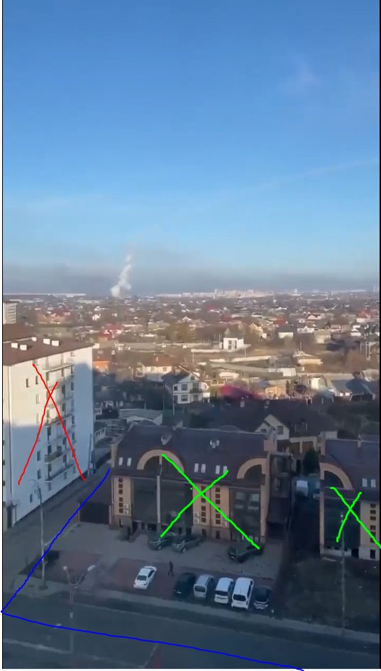 You can see the location of the building hit by a missile in Kyiv and the location where the launch video is taken. The blue is where I believe the launch took place. Which is well south of Kyiv and not likely a position the Russians occupy or could have set up a SAM site at.
