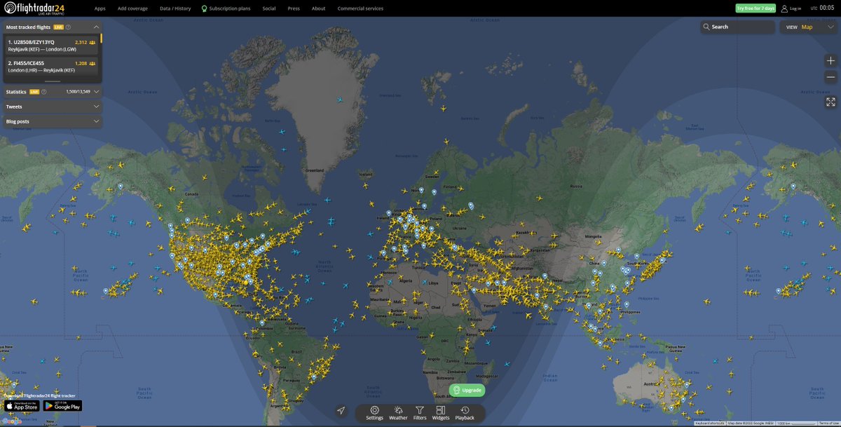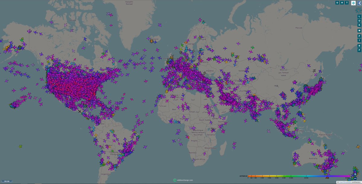 Websites like these collect ADS-B data from feeders, consolidate it, map it, and disseminate it in near real-time. Depending on the coverage of their feeder networks, websites will have a near-global map of air traffic. 8/X