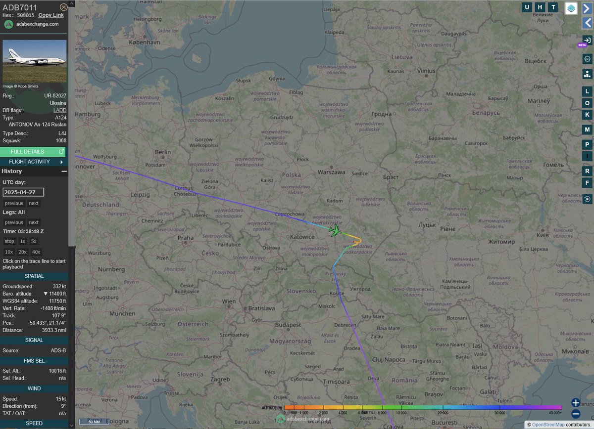 On April 26th, UR-82027 departed Tuscon for Rzeszów–Jasionka Airport in Poland. Located near the Polish-Ukrainian border Rzeszów–Jasionka serves as a key logistic hub for US and allied military support for Ukraine.