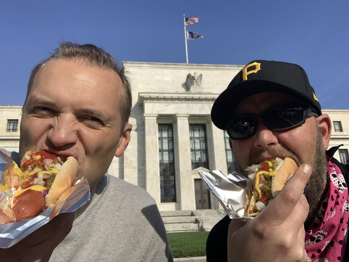 11/14/20 10:25AM. As people began to funnel into Freedom Plaza, Vladimir and I decided we should probably have a bite to eat in front of the Federal Reserve. I miss that pink skull bandana btw...I stole it from my moon. It was lost later. She has yet to forgive me.
