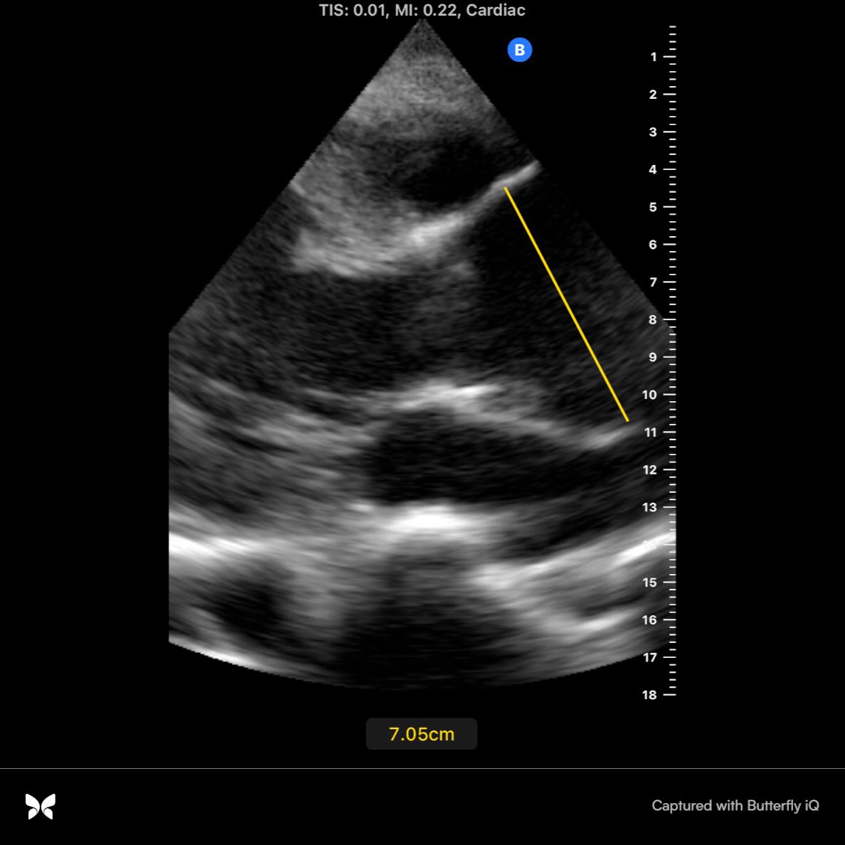 So in about 1-2 minutes we have a good idea what’s going on here: thoracic aortic aneurysm with severe aortic regurgitation. Measuring the aortic root and thoracic aorta confirms the diagnosis.