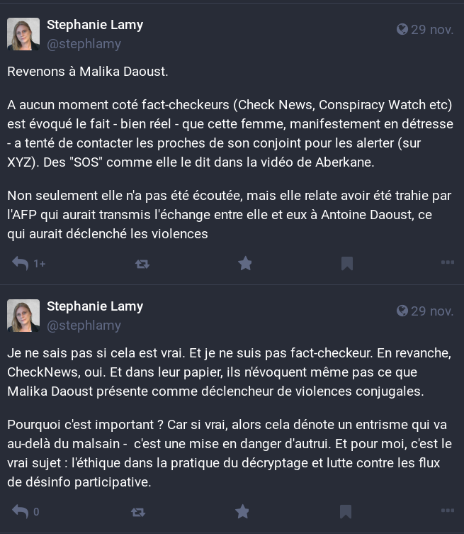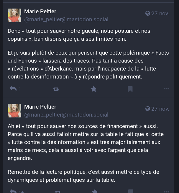 Et c'est là qu'entre en jeu les 2 expertes auxquelles je faisais allusion, qui dans ces démarches de vérification des faits ne voient que du copinage, un "boys-club", du masculinisme, etc.