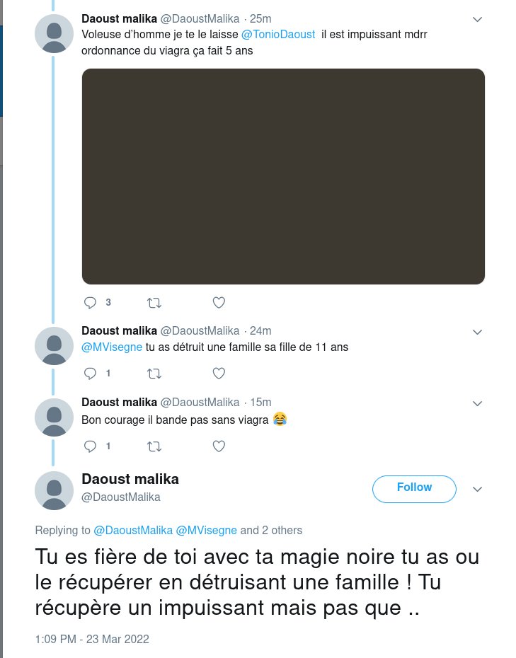 Pas mal de monde relève en gros une grosse incohérence, un gros mensonge : Malika Daoust prétend avoir dénoncé de la violence conjugale dans divers messages au mois de mars, dénonciations qui auraient été couvertes, donc...