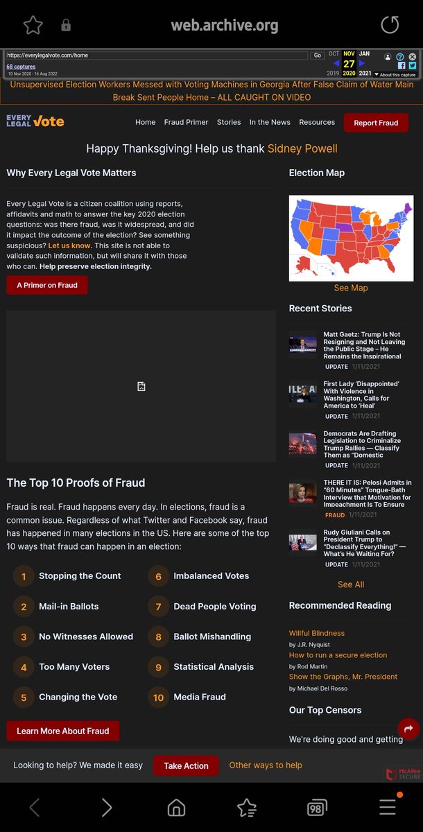 Told viewers to visit Every Legal Vote & click “Take Action” to email those who have a duty to investigate election fraud. web.archive.org/web/2022121819…