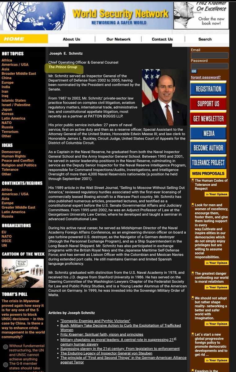 Schmitz - former inspector general of the US Dept of Defense & former executive with Blackwater Worldwide.