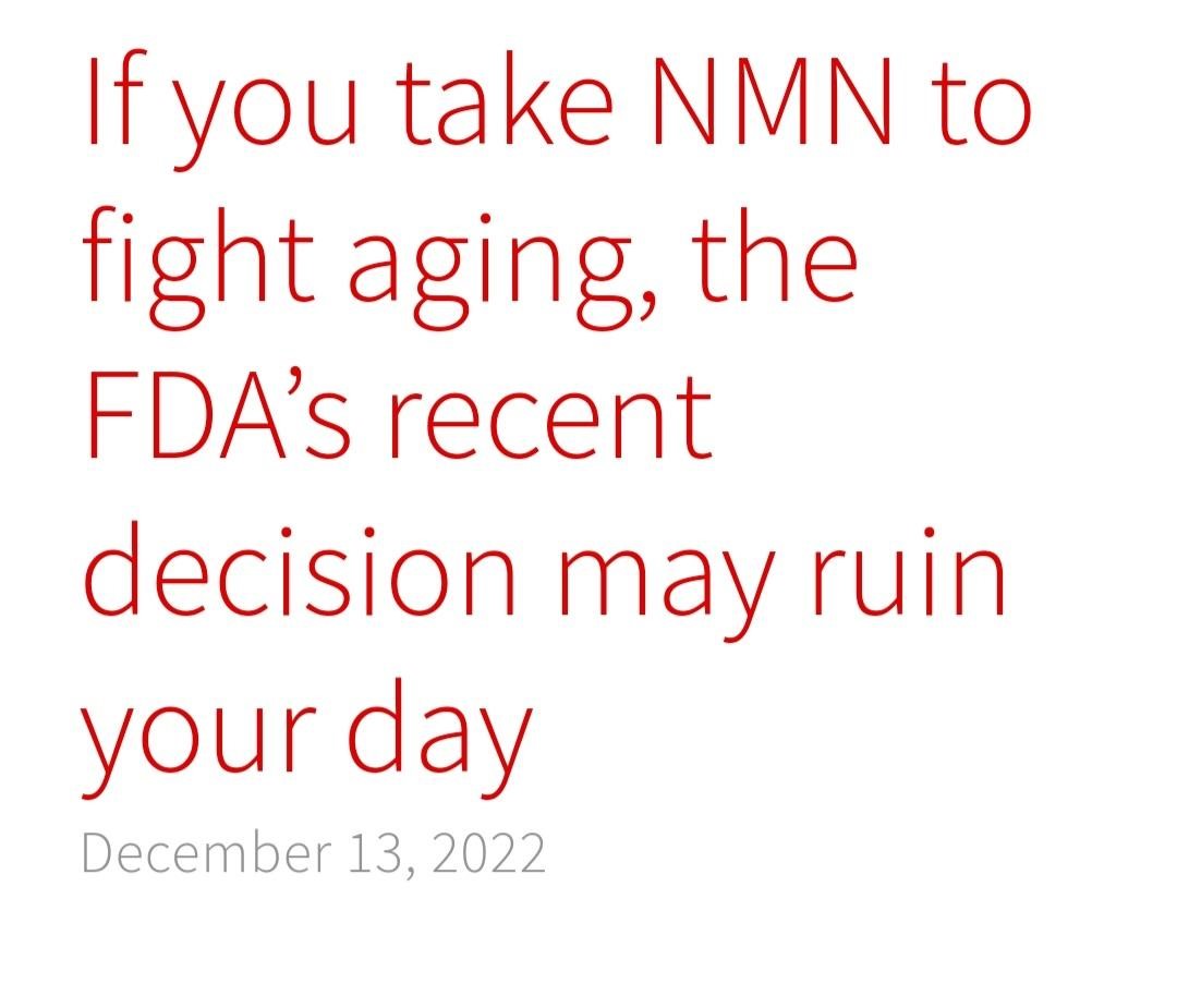 NMN's life-saving. BUT THERE'S A PROBLEM. NMN's about to be taken off the market❗️ A few weeks ago, the FDA announced over-the-counter NMN will be banned. Even though NMN's a natural supplement that's been utilized safety by thousands of people for many years. ☹️ 13/20 Image