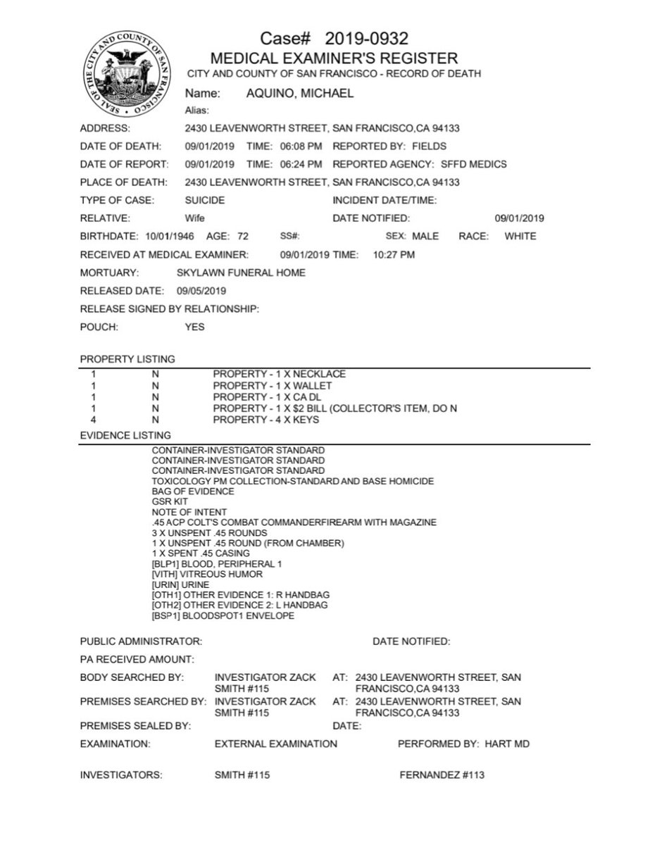 Correction: Aquino shot himself near his right temple. Don't know where we got that it was in his mouth.