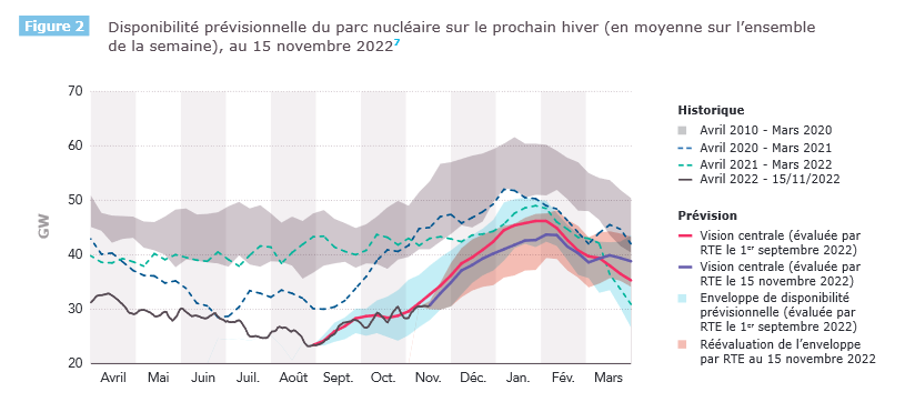 2/ La crise en cours est liée à des causes multiples, la principale étant une baisse historique de la disponibilité du parc nucléaire. Cette faible disponibilité concerne notamment l'hiver avec un déficit attendu de 10 à 20 GW.