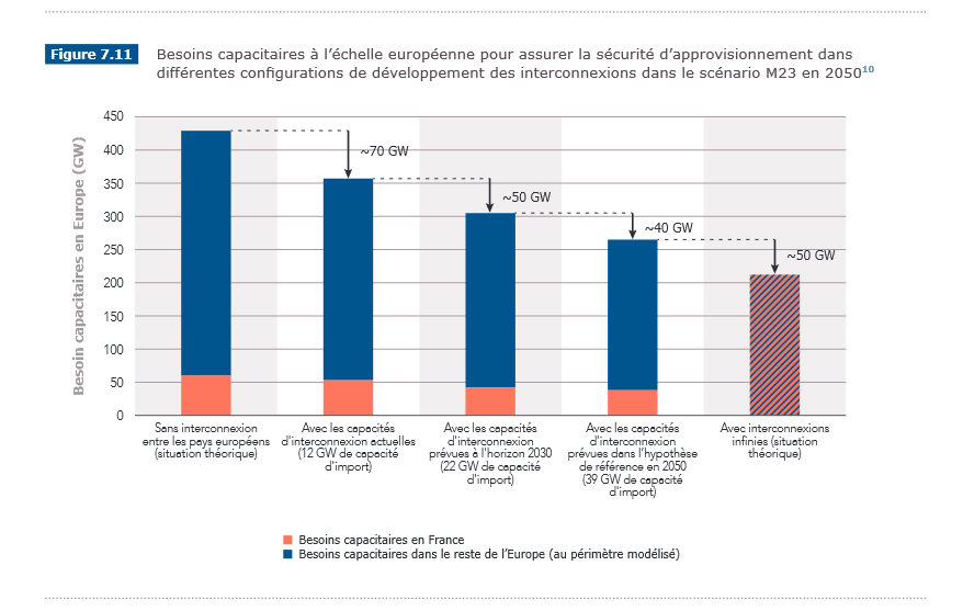 L'intérêt ne repose pas uniquement sur les appels en puissance, mais aussi sur la partie énergie. Les interconnexions permettent ainsi de diviser par plus de deux le besoin de gaz décarboné utilisé dans le fameux "back-up".