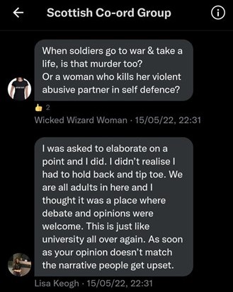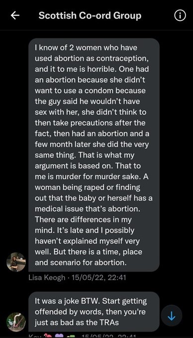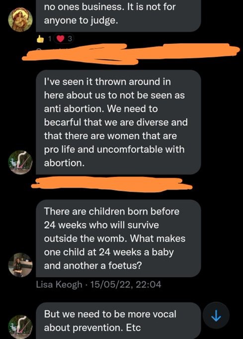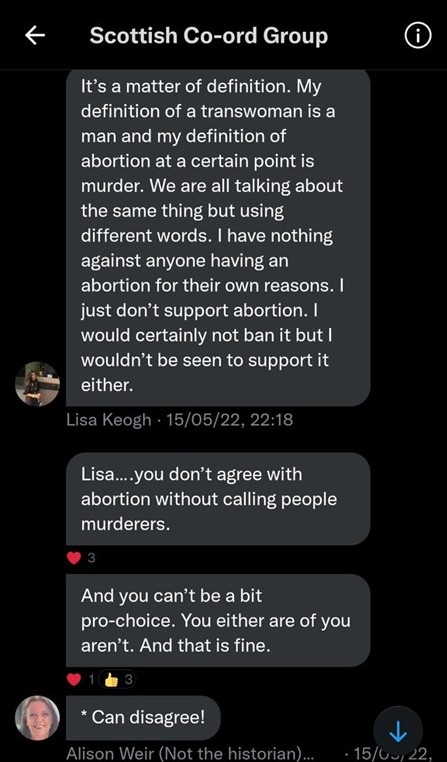 In sueing her University Lisa Keogh has had support from members of the Scottish Feminist Network and For Women Scotland. She is also part of the anti-abortion faction within the GC movement. Debates around a woman's right to choose happened more than you would expect.