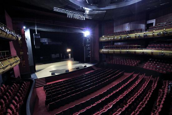 The opera house is appropriately located at the base of the pyramid, as it is where the lowly masses can gather to take in bread and circuses. It is a dark (unilluminated) room with large image of the sun on the ceiling.