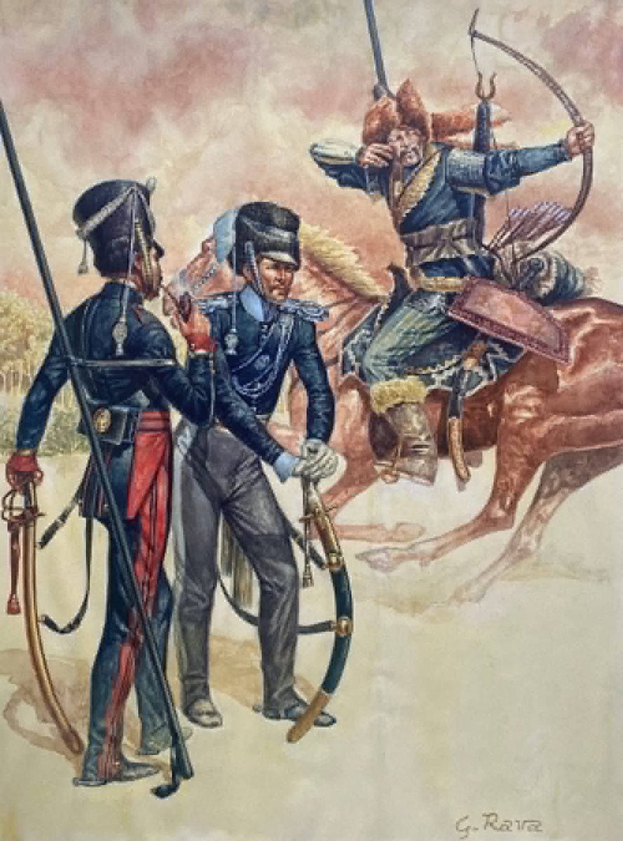 Más allá de los cosacos las fuerzas napoleónicas en Rusia (1812) tuvieron que hacer frente a unas fuerzas que recordaban a los hunos y mongoles.
