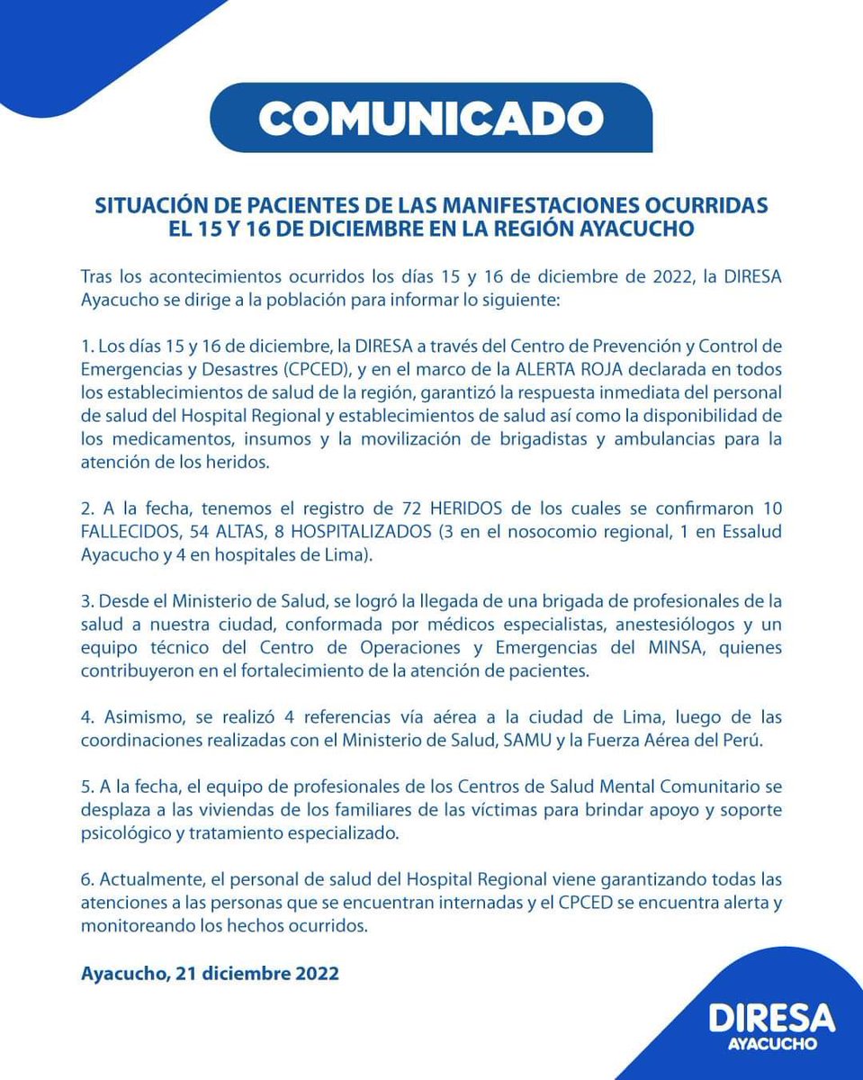 #Peru | La DIRESA di Ayacucho ha confermato oggi la morte di Jhonathan Alarcón Galindo, ferito gravemente dalla repressione della polizia il 15 dicembre scorso.