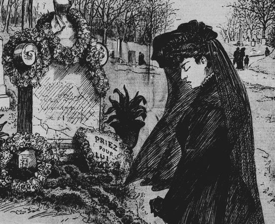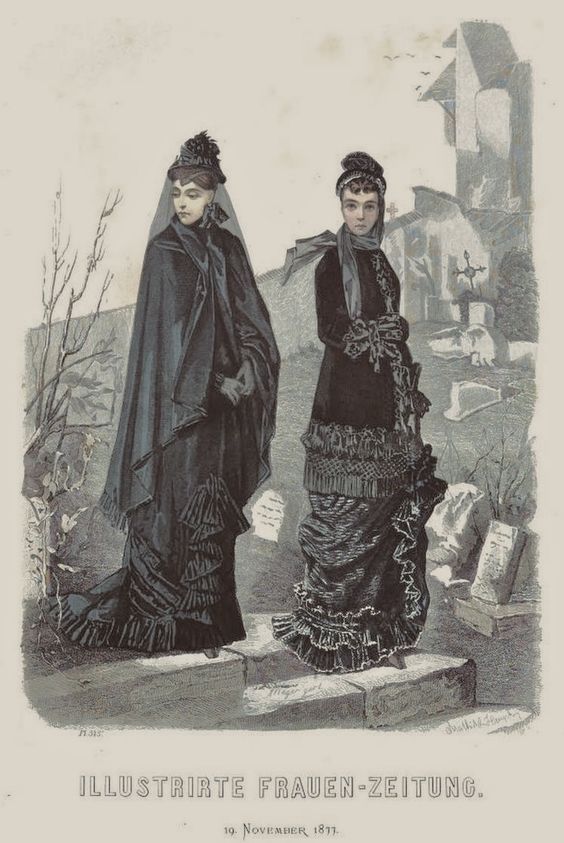 pobożności. W XIX w. wdowy nosiły żałobne stroje przez co najmniej trzy miesiące i nawet do dwóch i pół roku w zależności od lokalnych zwyczajów. Czerń ubioru oznaczała pozbawienie się światła, które zmarły za życia dawał bliskiej osobie. Skromny strój żałobny wyłączał noszące go