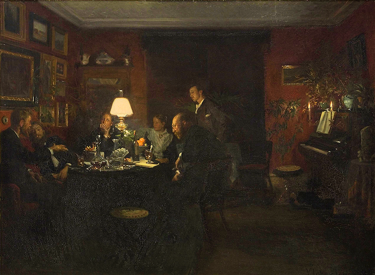 towarzyskie, które upamiętniał na płótnach. Ale najważniejszym salonem był dla niego dom rodzinny. Sceny z życia rodzinnego stanowiły częsty temat jego prac obecny na każdym etapie twórczości. Pojawiały się na nich jego żona i dzieci, bliższa i dalsza rodzina. W 1894 r. duński