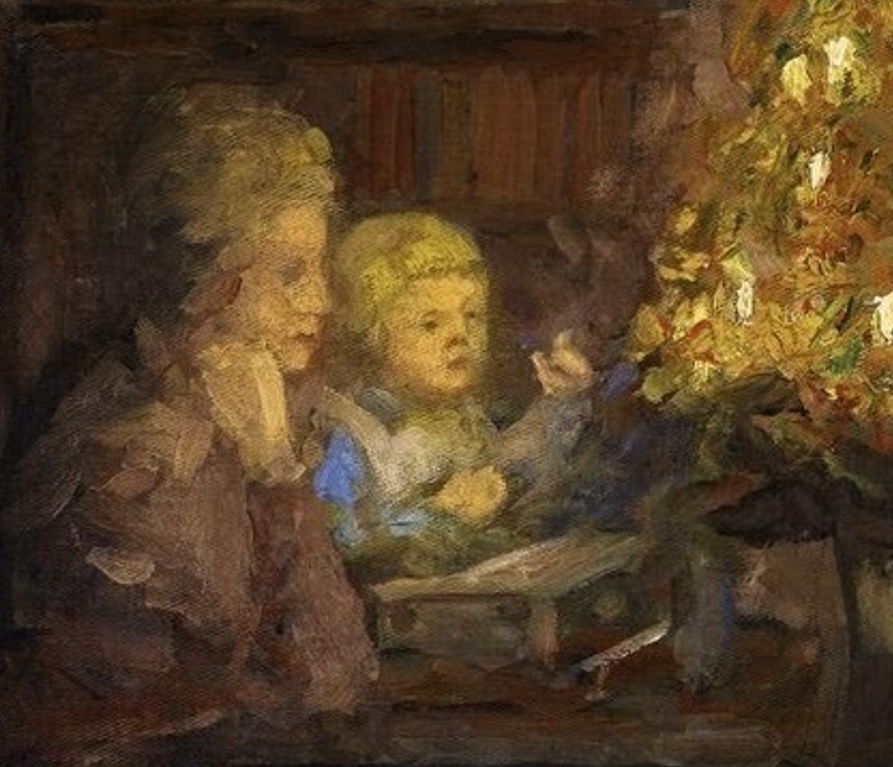 wspominały jego córki Gerda i Bodil. Tak też było w 1891 r., gdy Viggo zakupił jedną z największych choinek w Kopenhadze do domu przy Amaliegade 35, gdzie mieszkał z żoną Marthą i sześciorgiem dzieci (na obrazie córka Nanna z mamą). Szkicowanie obrazu rozpoczęło się