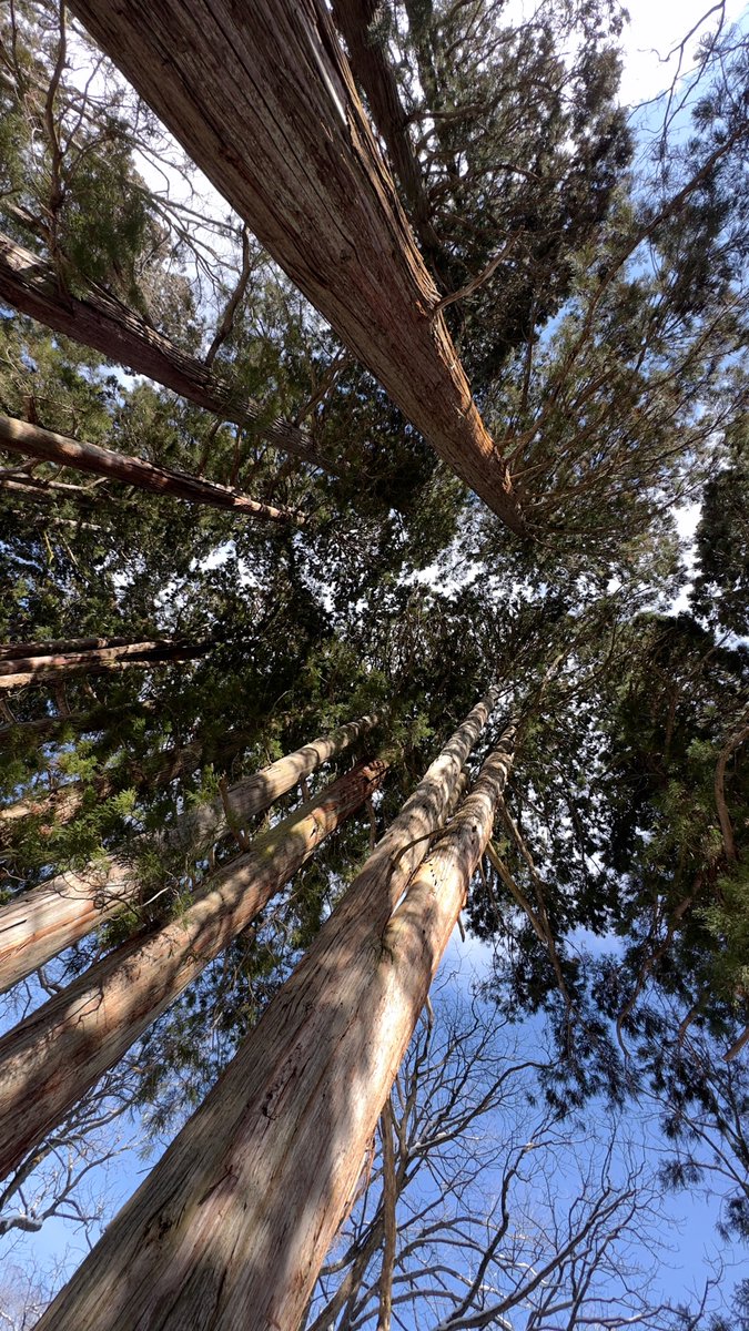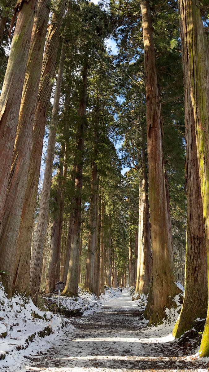 Esos árboles que ven son cedros, y tienen 400 años aproximadamente. Hace 400 años, monjes shinto sacaron esquejes de un cedro inicial, que se considera un árbol sagrado shinto, y plantaron esos esquejes a lo largo del camino.